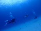 沖縄本島と慶良間諸島で潜ります!恩納村と言えば「青の洞窟」!絶妙に綺麗な青い海と、運が良ければクマノミ6種類見られます。水深40mに沈むアメリカ駆逐艦「エモンズ」も見に行きます。砲台などが当時のまま残っており、船体中央には慰霊碑もあり哀悼の意を持って潜ります。そして最後に慶良間ブルーを堪能しましょう!カメも沢山いますが珊瑚がとにかく綺麗・・・!白い砂地の上を飛んでいるかのような透き通った海