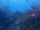 | ダイナミックな地形と濃い魚影、鮮やかなソフトコーラルが魅力のボートポイントです。海底からそそり立つ岩根が複雑な地形を形成しており、水深70mまで落ち込むドロップオフやアーチ、ケーブなど、そのスケールの大きさに圧倒されるでしょう。 | |